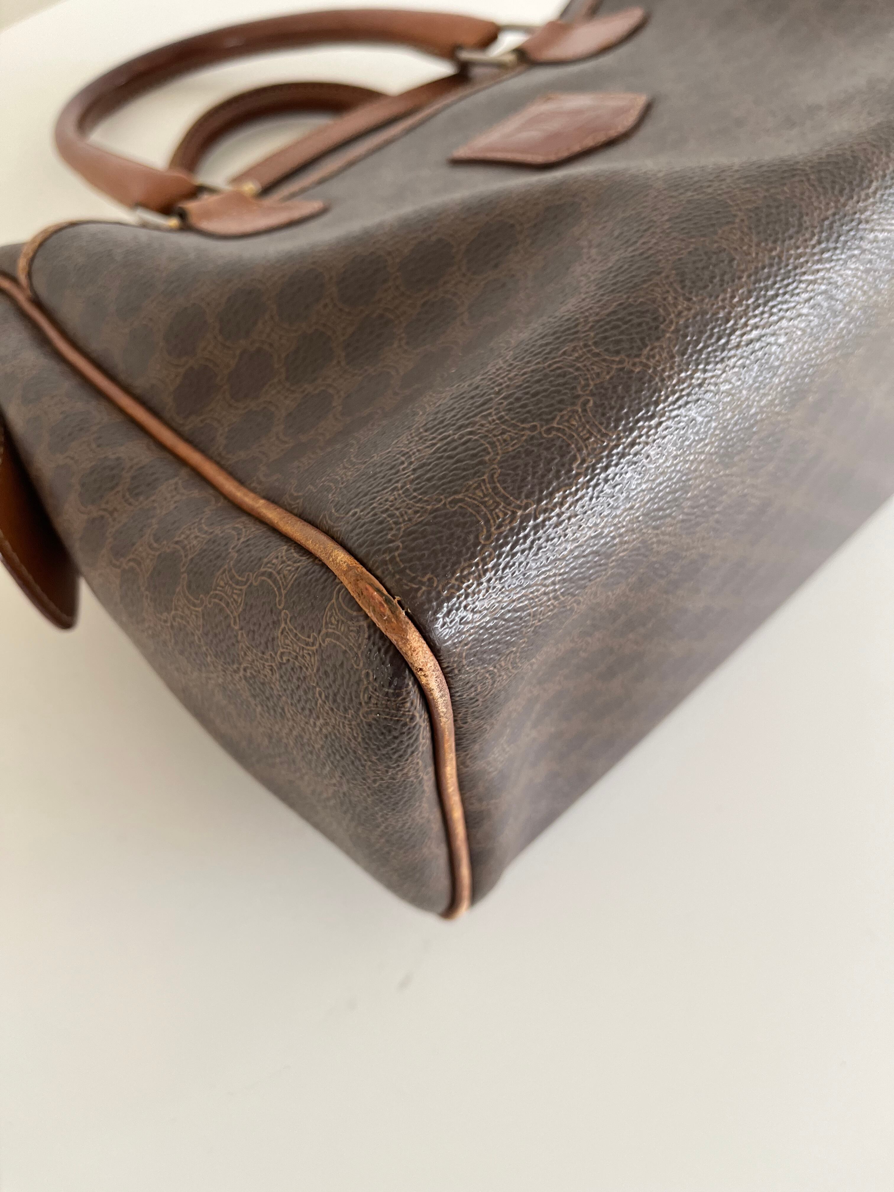 ヴィンテージバッグですので小傷、角スレ、お写真最後バッグ内側の内ポケット横に数センチの破れ(ファスナーは閉まります)長期保管による経年劣化等の使用感ございます為、破格で販売しておりますが、日常使いに支障をきたすようなダメージはございせん。